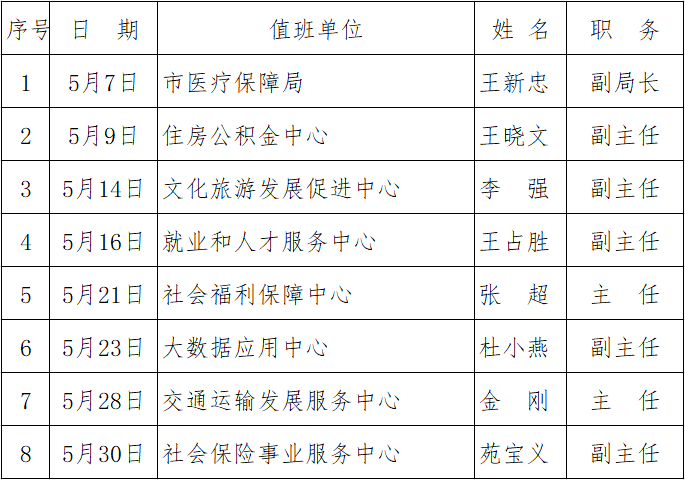 一、5月份领导干部接听“8890”热线值班表